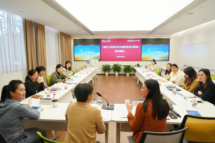 10月22日下午,浙江大学基础交叉研究院第7期“青锋思享会”举行,此次活动聚焦热点交叉前沿发展趋势,特邀浙江大学图书馆情报分析中心团队作《从“十四五”到“十五五”浙江大学热点交叉前沿发展与展望》专题解读报告及相关数据分析工具指导。活动由交叉院副院长单立楠主持。图书馆情报分析中心团队及交叉院办公室相关人员参加会议。