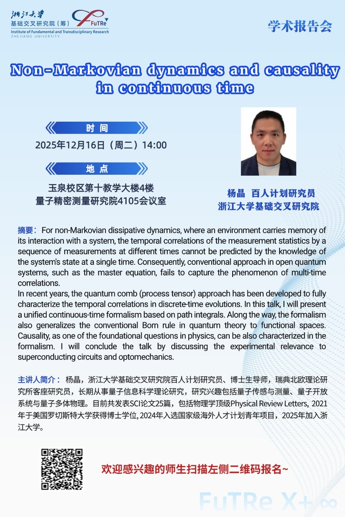 报告会预告: Non-Markovian dynamics and causality in continuous time