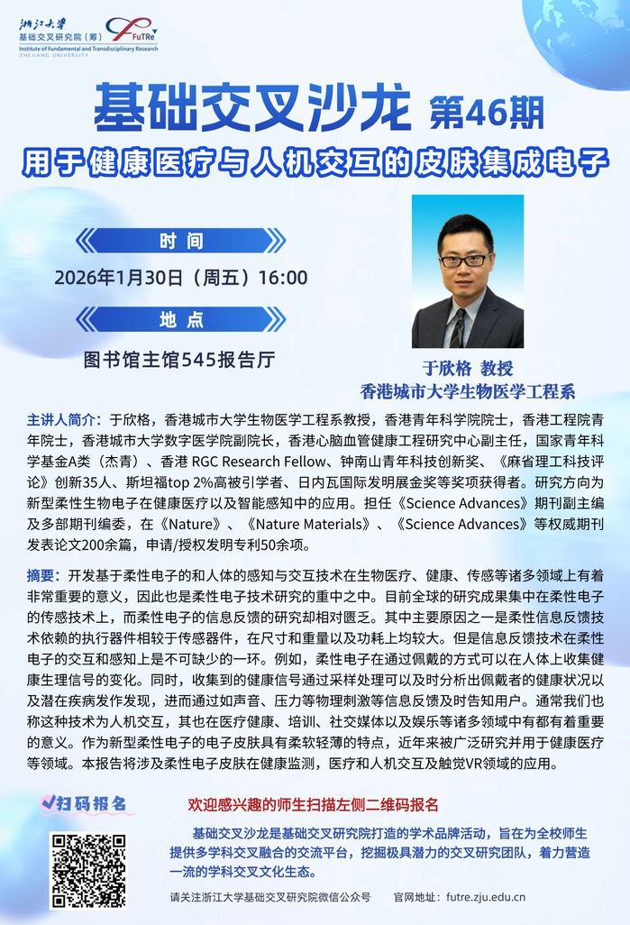基础交叉沙龙第46期:用于健康医疗与人机交互的皮肤集成电子