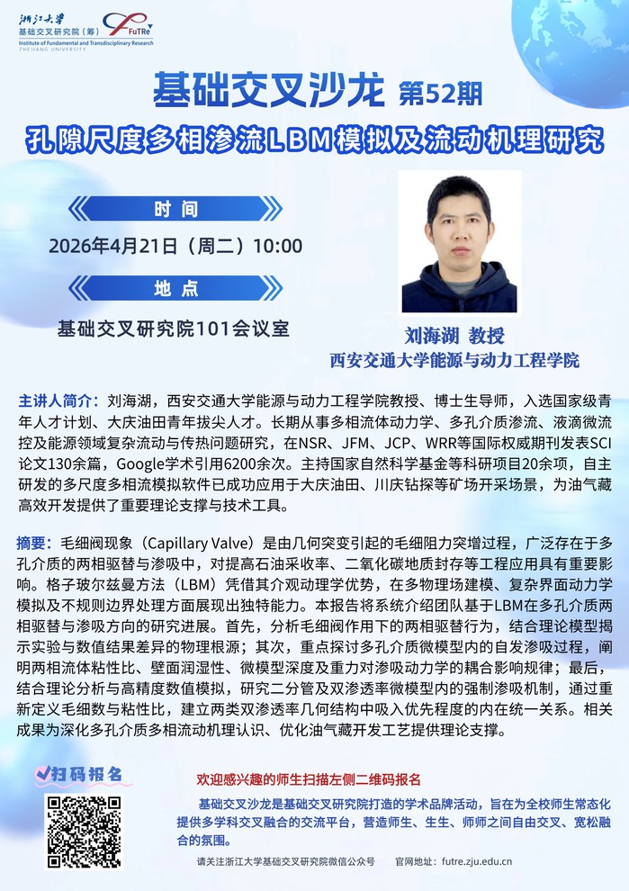 基础交叉沙龙第52期:孔隙尺度多相渗流LBM模拟及流动机理研究